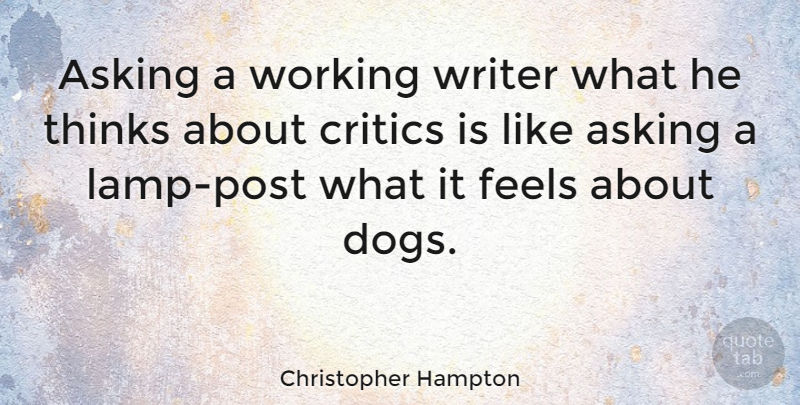 4. Asking a working writer what he thinks about critics is like asking a lamppost how it feels about dogs.–– Christopher Hampton