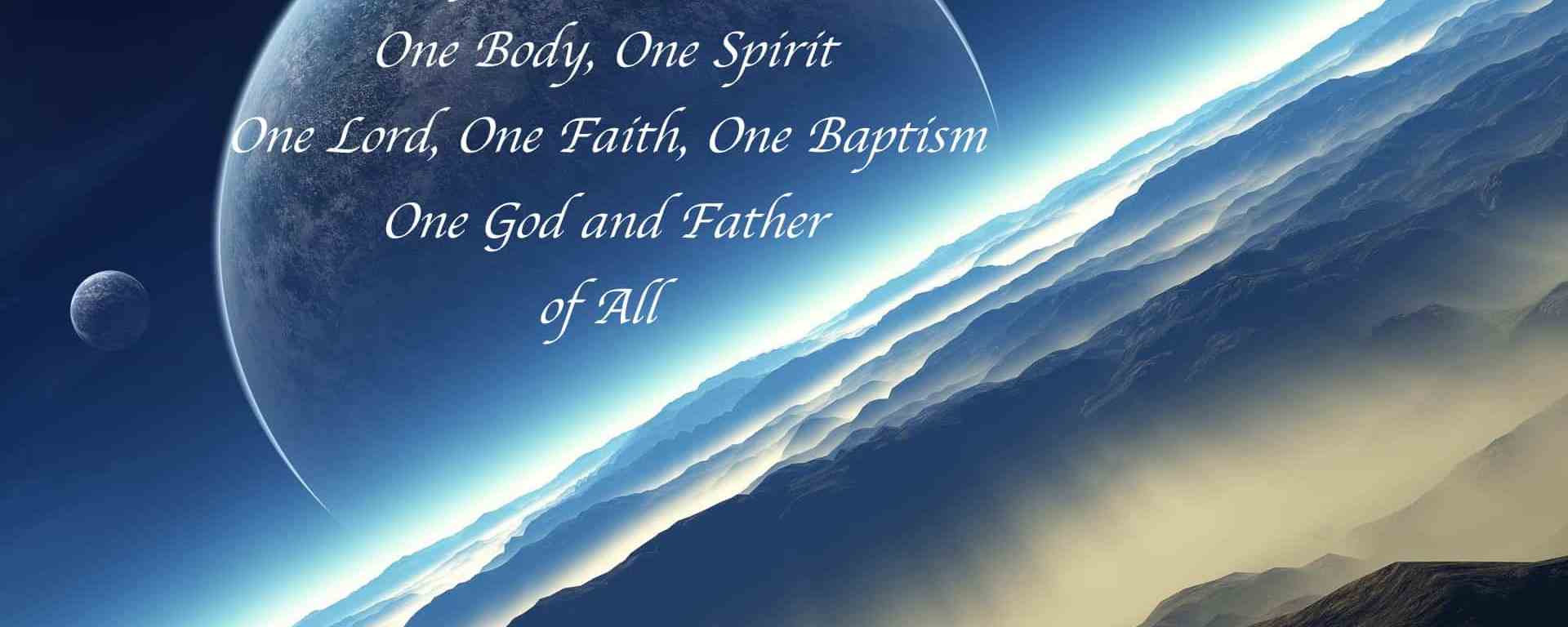 One Lord, one faith, one baptism, One God and Father of all, who is above all, and through all, and in you all. (Ephesians 4:5-6 KJV)