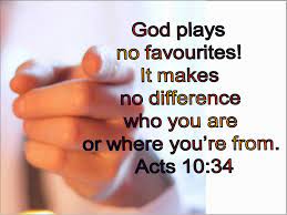 This is where we justly learn that God is no respecter of person.