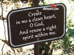 Create in me a clean heart, O God, And renew a right (steadfast) spirit within me. Cast me not away from thy presence, and take not thy Holy Spirit from me. (Psalms 51:10-11 NKJV)