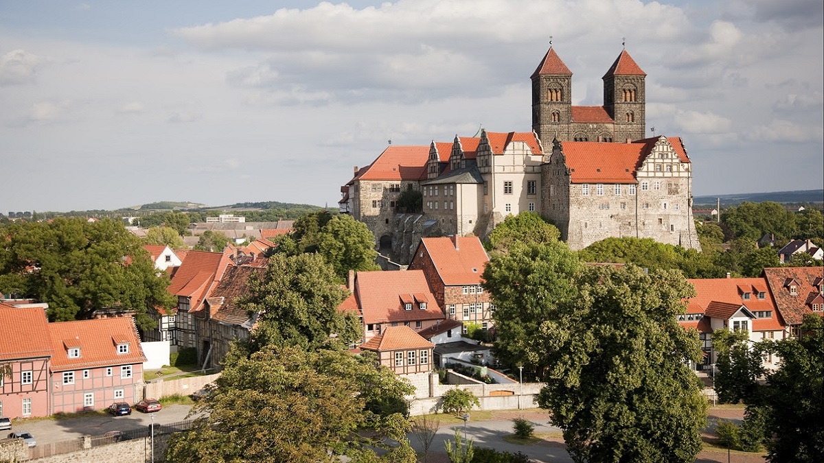 After Henry’s death in 936 in Memleben, he was buried in Quedlinburg, where Queen Mathilde founded a convent that same year. She lived there the following years and took care of the family’s memorialization. Thus Quedlinburg Abbey became the most important center of prayer and commemoration of the dead in the East-Franconian Empire. Like in other convents, daughters of noble families were raised in Quedlinburg, to later become Abbesses in order to secure their family’s influence. One of them was her granddaughter Matilda, daughter of Otto I and Adelheid of Burgundy, to whom she passed on the conducting of the convent in 966, after 30 years of leadership. The younger Mathilde, therefore, became the first abbess of the convent in Quedlinburg. With her other goods, Queen Mathilde founded further convents, one of them in 947 in Enger. Her last foundation was the convent of Nordhausen in 961.