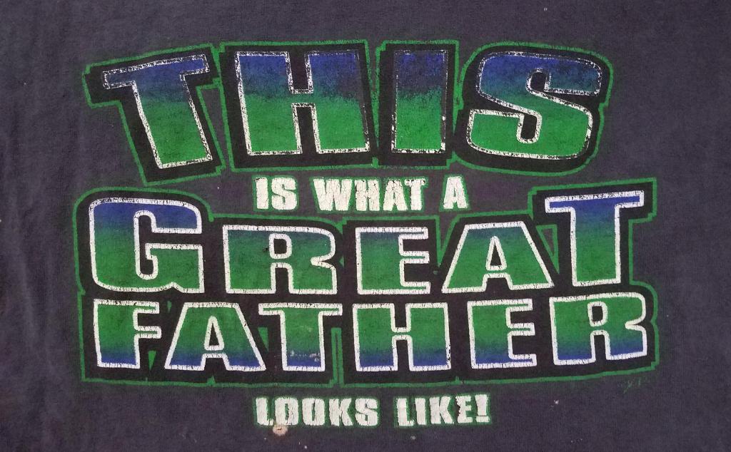 “This Is What A Great Father Looks Like” – Our youngest daughter gave him this tee shirt one Father’s Day because that’s how she saw him and remembers him. He was always a source of answers and encouragement for her. Bob was so proud of that tee shirt that he wore it everywhere. Even when he painted. That’s why it looks so worn. Now he usually wears it around the house. “And you, fathers, do not provoke your children to wrath, but bring them up in the training and admonition of the Lord.” (Ephesians 6:4)