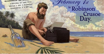 Now for those health-conscious individuals, today kicks off Bike To Work Month, and is also National Dark Chocolate Day! The food connoisseurs have February 5 as World Nutella Day, February 6 as National Frozen Yogurt Day, February 16 as National Almond Day, and February 27 as National Protein Day. For the music lovers…February 2 is National Ukulele Day, February 3 is The Day the Music Died, and February 11 is National Guitar Day. We, writers and readers, have to pay homage to Daniel Defoe on Robinson Crusoe Day which we also celebrate today. With Valentine’s Day only two weeks away don’t forget the cards, candies, flowers, packages in the mail, or those surprise reservations. Whatever you do please don’t wait until the last minute—big mistake!