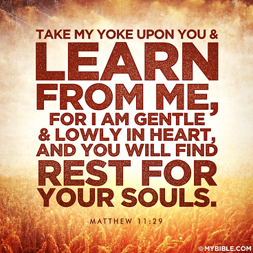 The above title has been stored in Drafts for quite some time, but this morning a scripture popped out at me…Take My yoke upon you and learn from Me, for I am gentle and lowly in heart, and you will find rest for your souls. (Matthew 11:29 NKJV)