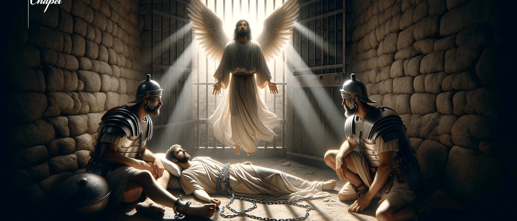 Peter was therefore kept in prison, but constant prayer was offered to God for him by the church. And when Herod was about to bring him out, that night Peter was sleeping, bound with two chains between two soldiers; and the guards before the door were keeping the prison. Now behold, an angel of the Lord stood by him, and a light shone in the prison; and he struck Peter on the side and raised him up, saying, “Arise quickly!” And his chains fell off his hands. Then the angel said to him, “Gird yourself and tie on your sandals”; and so he did. And he said to him, “Put on your garment and follow me.” So he went out and followed him, and did not know that what was done by the angel was real, but thought he was seeing a vision. When they were past the first and the second guard posts, they came to the iron gate that leads to the city, which opened to them of its own accord; and they went out and went down one street, and immediately the angel departed from him. (Acts 12:5-10 NKJV)
